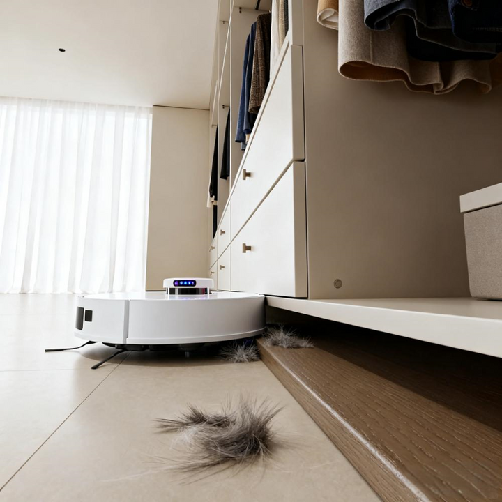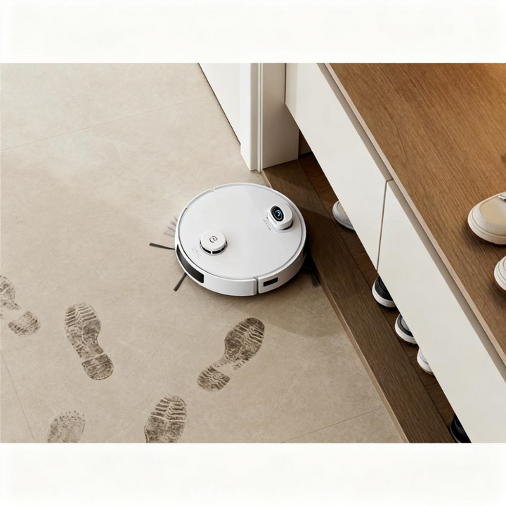 High-traction drive wheels let it climb 20mm thresholds easily. Algorithms and carpet sensors help navigate obstacles + transition between floors smoothly—safe and thorough cleaning every time.